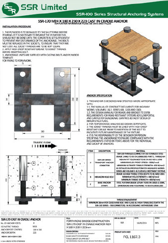 The management team of SSR Ltd were closely involved in the specification, design and manufacture of the Cast in Anchors for the project. The SSR-170 and SSR-175 design was developed for a wide range of applications, for VRS, Lighting Columns, Wind-Shields and Gantries in a range of sizes from M12 X 4 Post to M36 x 16 Post Anchors.